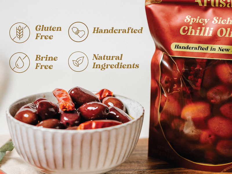 Enjoy these delicious Kalamata olives, deeply infused with oil simmered with Sichuan Pepper, fennel and ginger. Each olive bursts  with a zingy flavour. Not super hot, just medium heat and perfect for every spicy chilli lover.